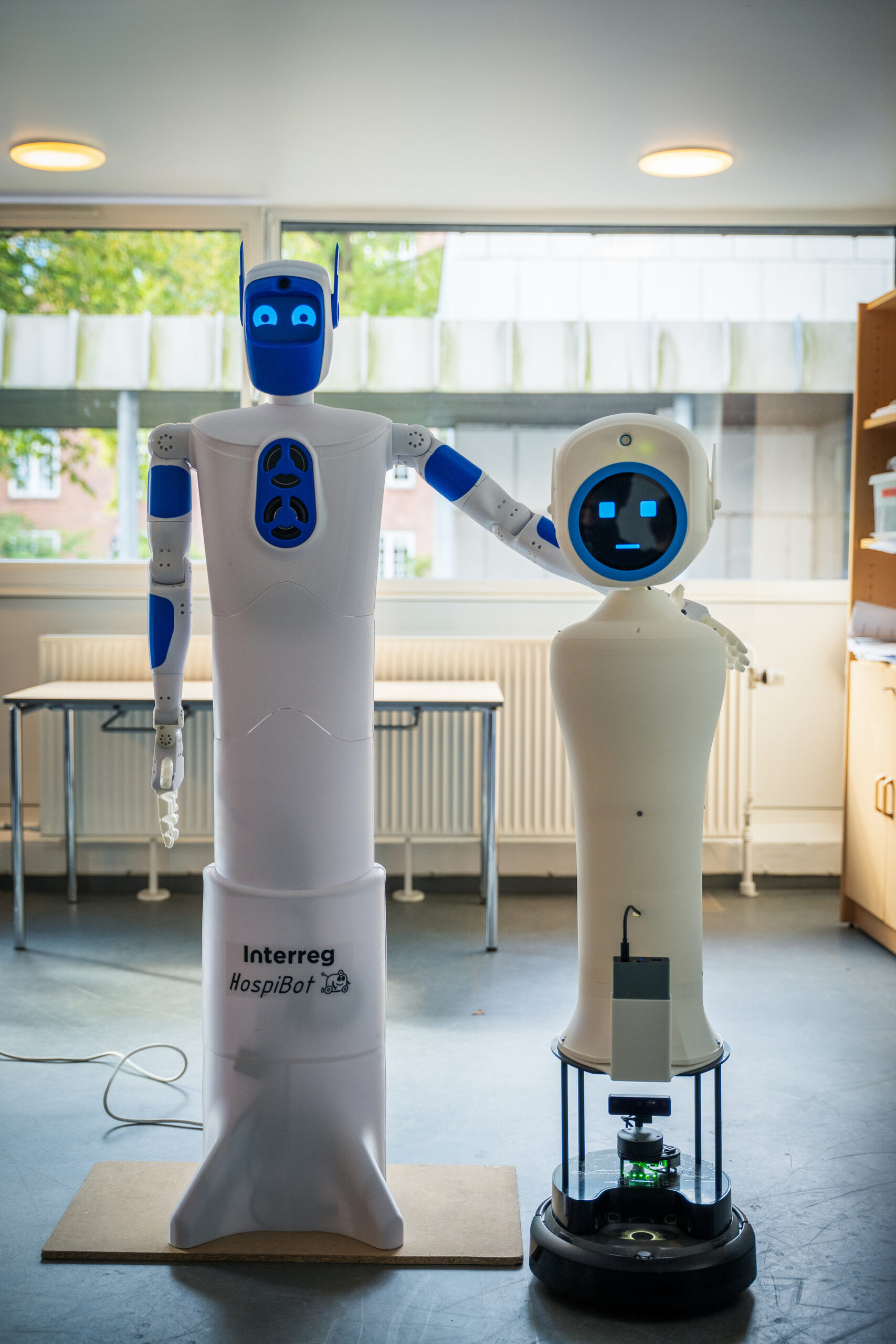 Impressions Click on the images to slide through some impressions of the HospiBot project in full size. 2025 - Images Videos 2025 HospiBot Days 2025 - by Starboard Visuals, German Sub HospiBot Days 2025 - by Starboard Visuals, Danish Sub HospiBot at Fehmarnbelt Days 2025 - Social Media Clip HospiBot at Fehmarnbelt Days 2025 - Social Media Clip Images 2025 Group photo of HospiBot partner meeting no. 5 HospiBot’s robots HuGo and Tele, September ’25 Chandrahas Kasoju and Robert Wendlandt with robot Tele Oskar Palinko and robot “HuGo”, HospiBot Days 2025 Miriam Pfau giving a talk at HospiBot Days 2025 Partner Meeting No. 4, March 2025 in Køge Chandrahas Kasoju with patroulling robot “Tele” Levin Labahn with research robot “Furhat” Research robot “Furhat” joined HospiBot in 2025 Images 2024 Chandrahas Kasoju with patroulling robot “Tele” Partner Meeting No. 4, March 2025 in Køge October 2024, Køge: Miriam Pfau at the Quo Vadis conference Oskar Palinko presenting the mobile base Dirk Keil at Quo Vadis conference in Køge Partner Meeting No. 3, September 2024 Miriam Pfau with early version og greet & guide robot “HuGo” Dr. Franziska Uhing and Miriam Pfau @ Lübeck Summer Academy 24 Oskar Palinko with early version of greet & guide robot “HuGo” Partner Meeting No. 2, March 2024 Videos 2024 Recap of Project Year One - revealing HospiBot's humanoid robot "HuGo" ICSR'24 - International Conference on Social Robotics + AI 2024 Odense, DK